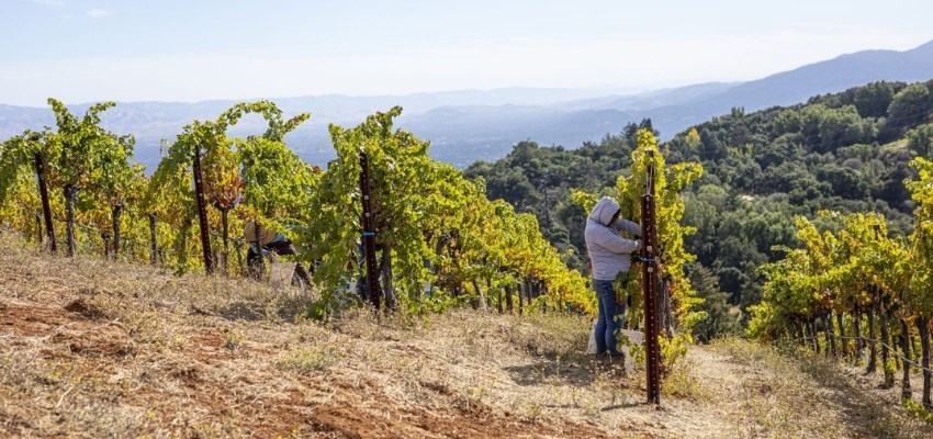 “A grapevine wants to crawl and climb and ripen bunches of tiny clusters for birds to eat so they can spread their seeds and make more grapevines,” explains David Gates, the senior vice president of vineyard operations at Ridge Vineyards. “We contain it to fit a system we can farm and sustainably work. If you want more vines per hectare or acre, and to be able to farm with a tractor and vehicle, then you are almost forced to use VSP.”