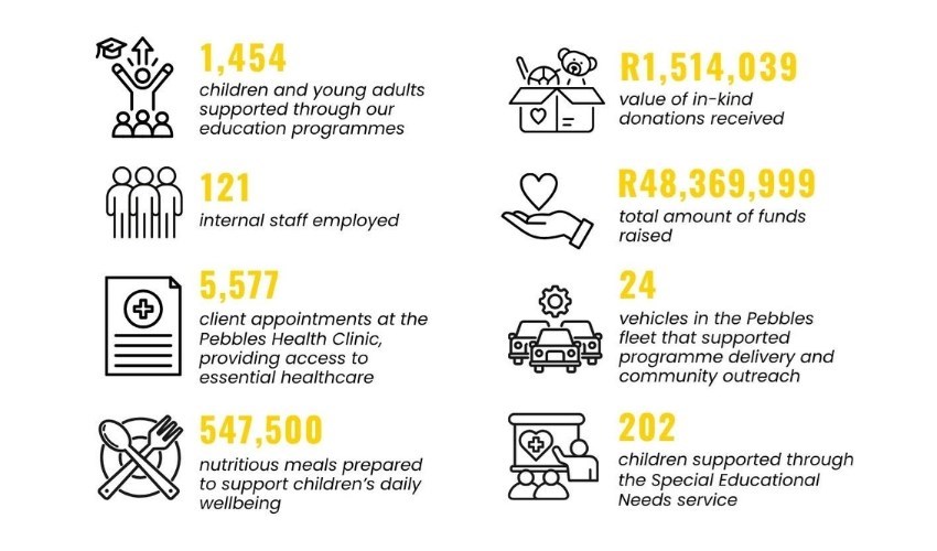 Simon, Jeff, Cathy, and Julian first welcomed Pebbles Project into their Early Childhood Development centre on Villiera in 2005. In 2008, they gave us a permanent home on the farm, now our Programmes Office, creating the foundation from which so much of our work has grown. Since then, their support has enabled us to expand and develop vital infrastructure, including our clinic, pods, soap programme, and youth development initiatives. Beyond this, they also covered essential operational costs, making a lasting impact on our organisation.